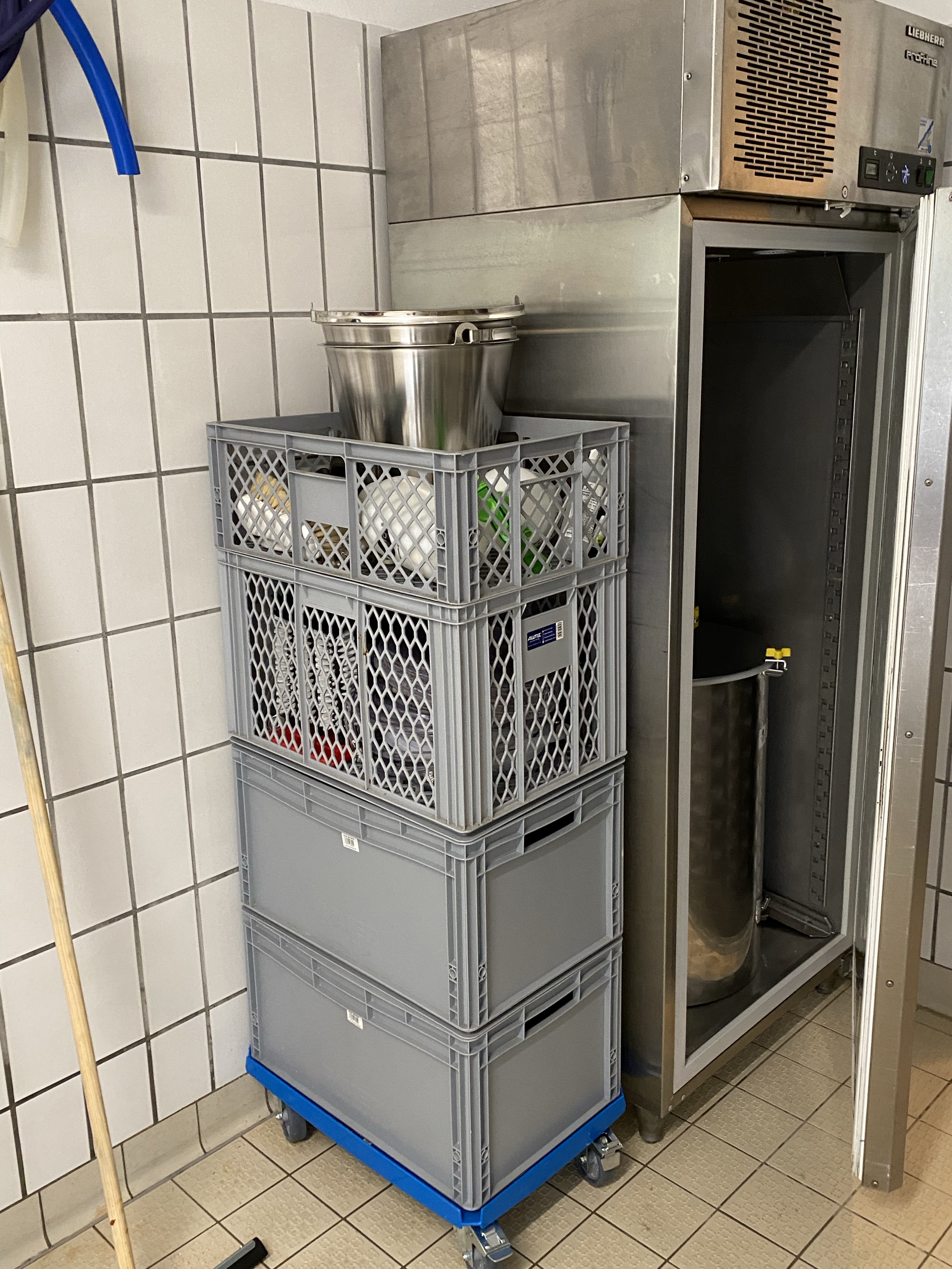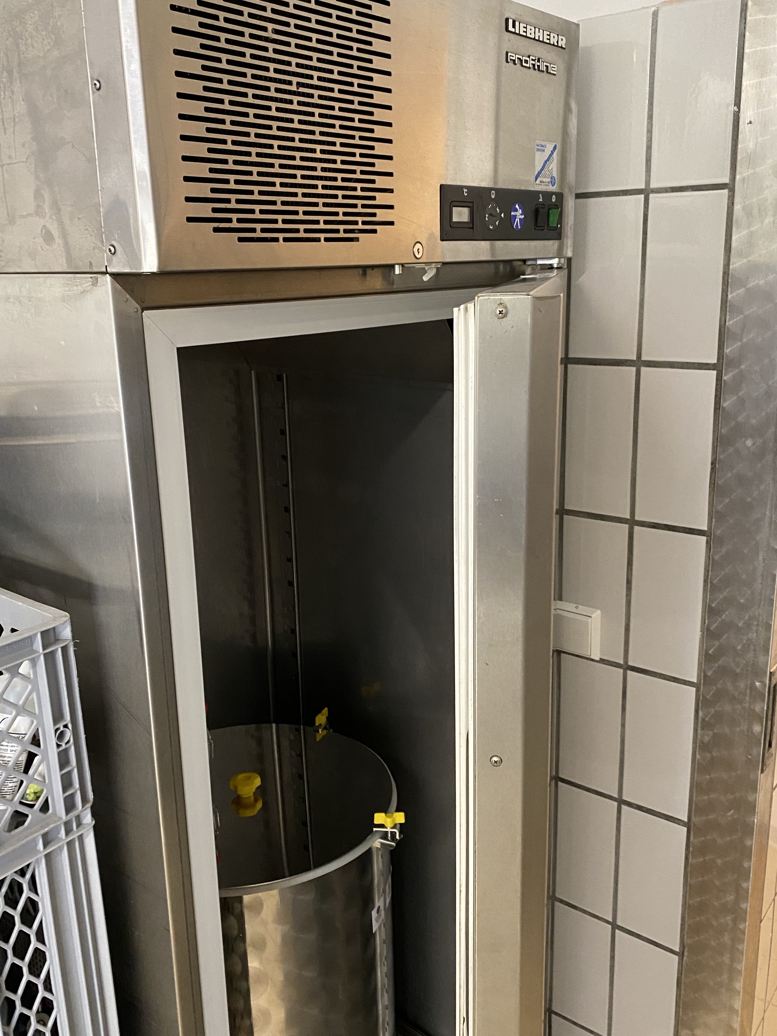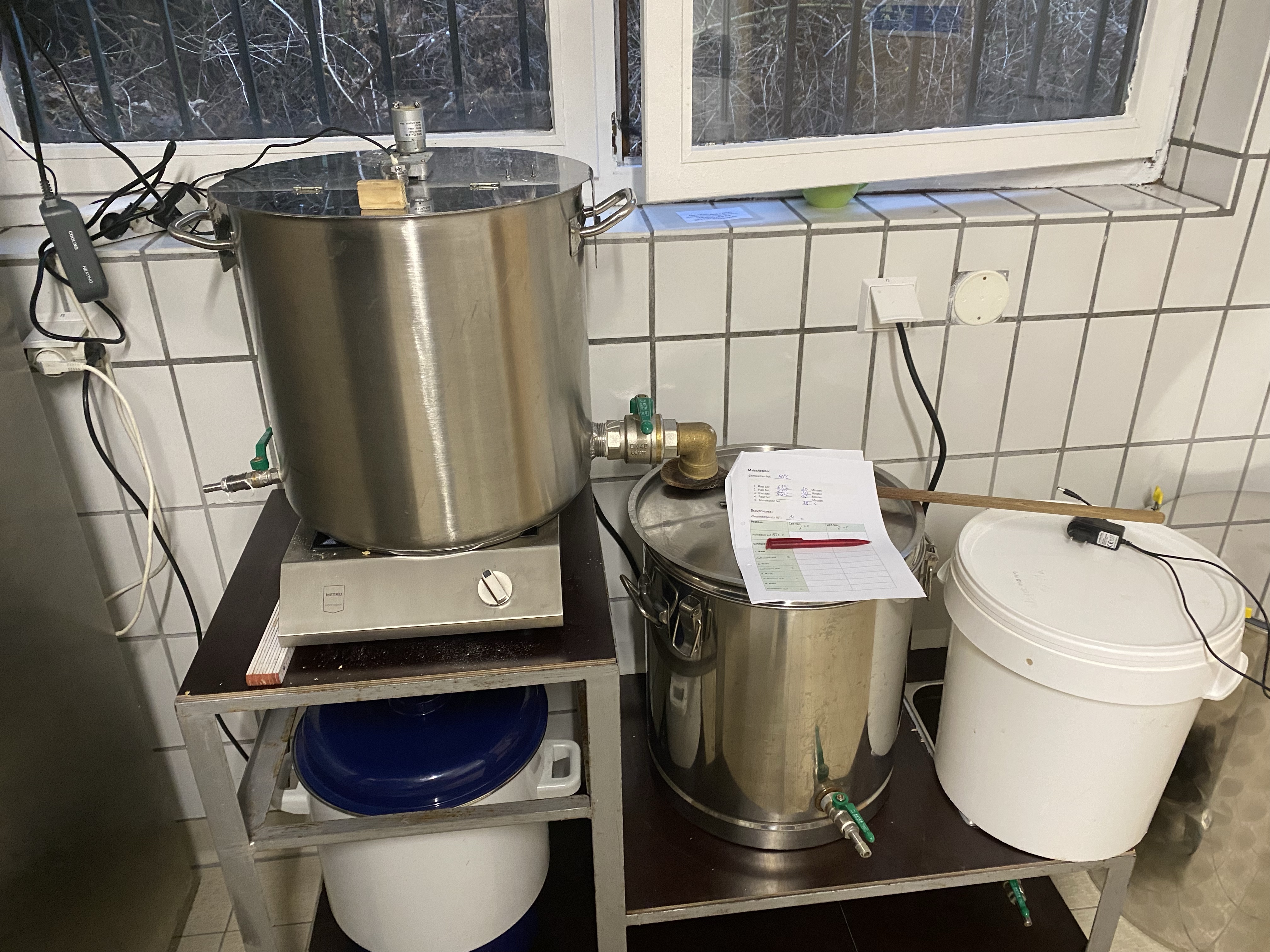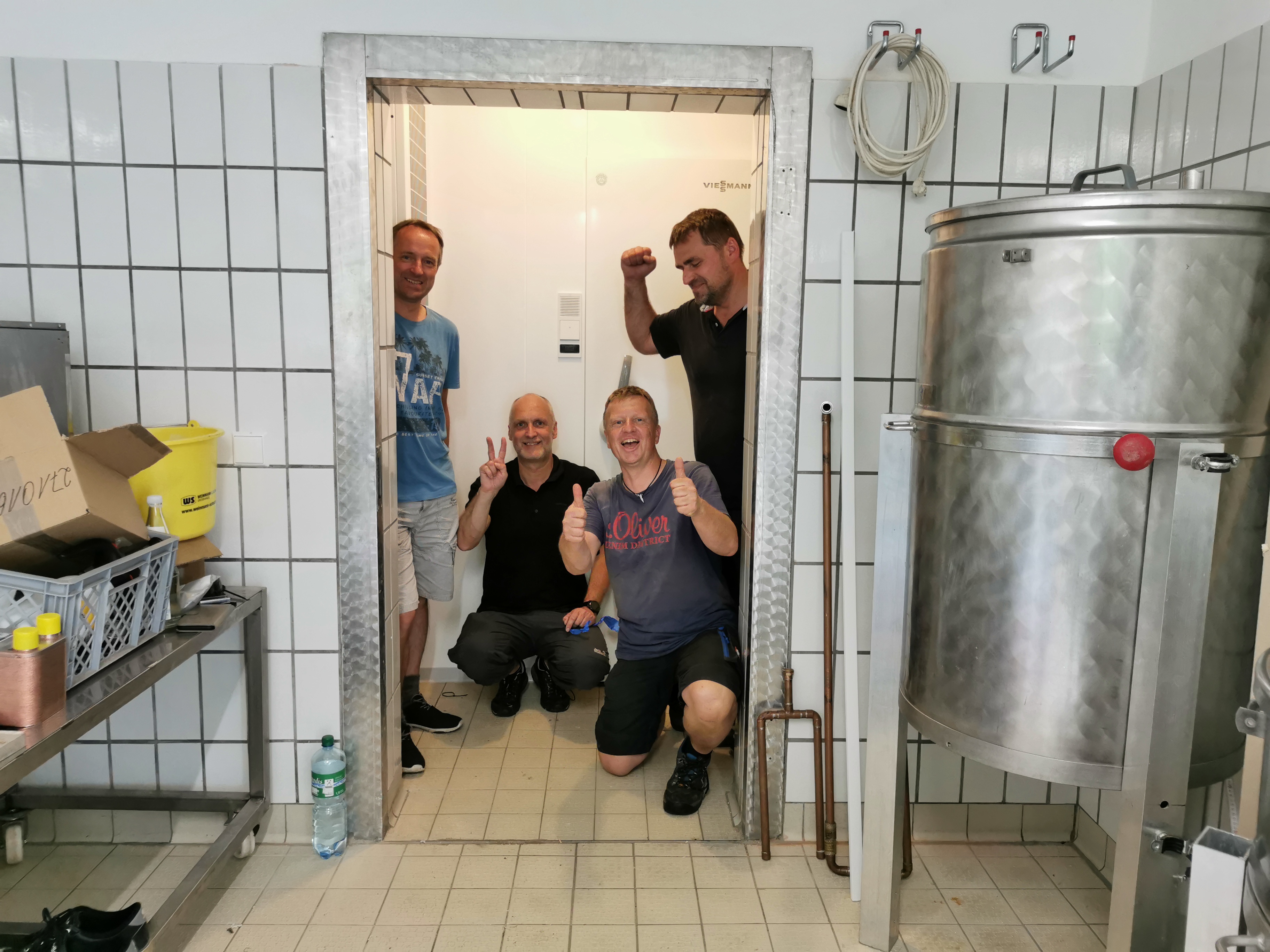 Unsere Brauanlage ist gerade mal 2 Hektoliter groß. Damit können wir Sudgrössen zwischen – je nach Biersorte – 100 und 200 Litern produzieren. Dafür haben wir großen Wert auf kühle Gärung und kalte Lagerung gelegt. In unserer Lagerkühlzelle herschen Sommer wie Winter Temperaturen um die 0 Grad Celsius.
